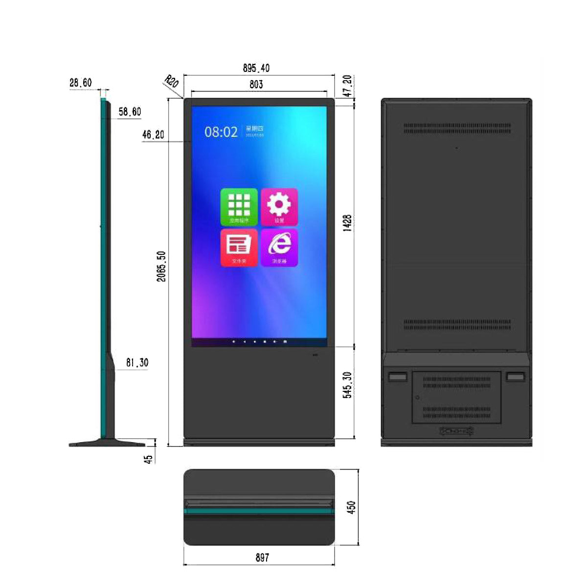 الموديل: شاشة عرض إعلانات عمودية بحجم 65 بوصة